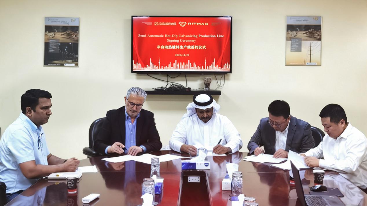 近日,徐州瑞馬智能技術(shù)股份有限公司(簡稱:瑞馬智能 英文名:RITMAN)成功與沙特阿拉伯電力領(lǐng)域龍頭企業(yè)Al-Babtain公司簽署合作協(xié)議,將為其新建一條新型環(huán)保角鋼自動鍍鋅生產(chǎn)線。此次簽約是公司深耕中東市場的又一重要突破,不僅彰顯了瑞馬智能在金屬涂層裝備領(lǐng)域的核心競爭力,更為公司國際化戰(zhàn)略布局寫下濃墨重彩的一筆。